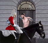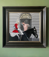 This breathtaking new painting will be the largest and no doubt a very popular centrepiece in Watson's forthcoming Melbourne exhibition DIORAMAS.  It was completed this week after six weeks near constant work, and demonstrates an exciting development in the artist's career, exploring personal themes relevant to his experience of the global pandemic and lock downs.  Watson's imagination was sparked by seeing an empty store display window and imagining London based French model Eddy Grim showering inside it. In contrast to him, a Royal Life Guard is still and resting - a metaphor for the memories of international travel which have been on pause for many including the artist.
