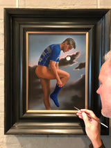 Wearing only part of his rugby uniform, we are left to imagine whether the artist has captured the model in a state of dressing or undressing, with the bias of the viewer informing the interpretation.